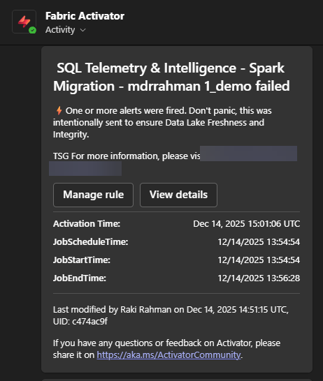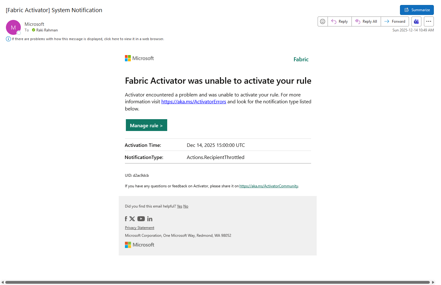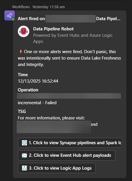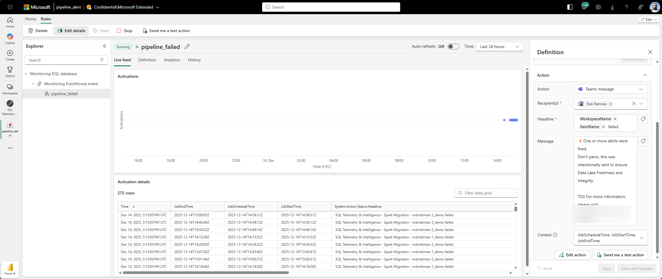 The only final criticism I have is I can't embed more emojis into the Fabric Activator Teams Alert 😡.