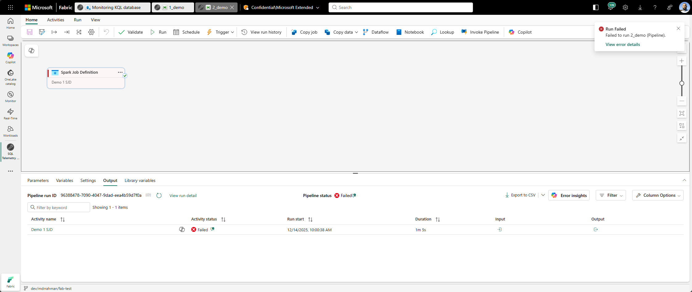 - Using Fabric Activator Job Events, that monitors particular pipelines.