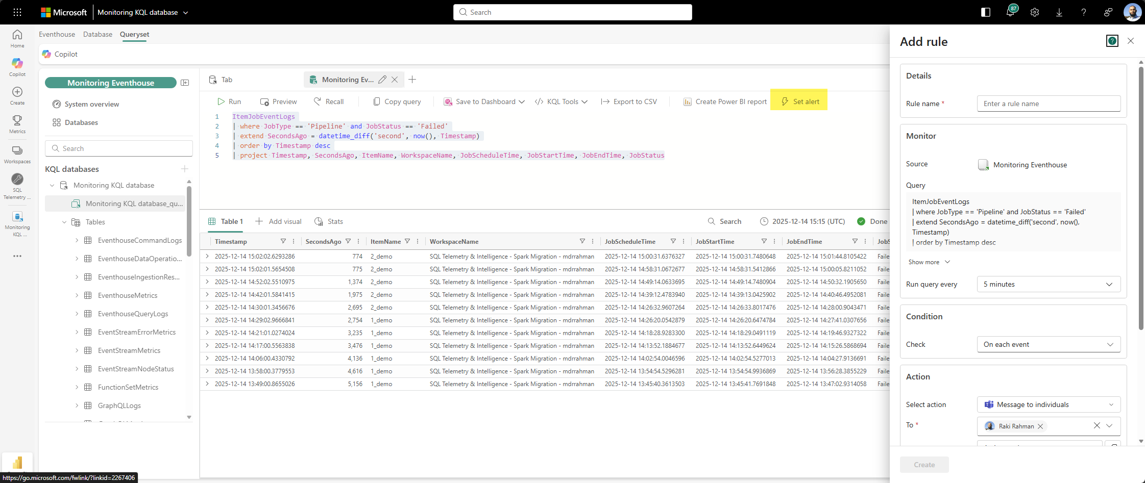 Alert on thousands of Fabric Pipelines with Monitoring Eventhouse