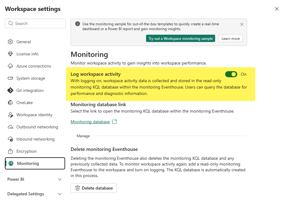 First, you must turn on Workspace Monitoring so Fabric Platform level tables are automatically sinked into Eventhouse: