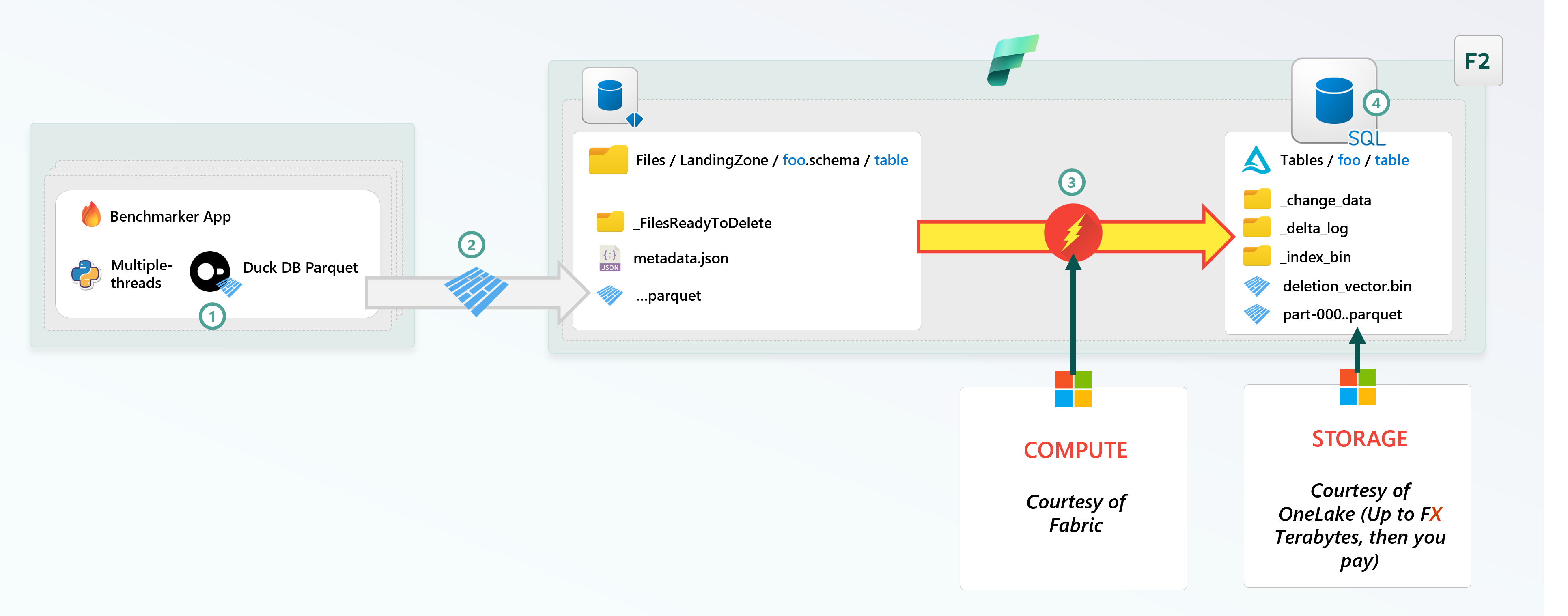 - Fabric Open Mirroring "senses" a new file was uploaded (Event Driven, I imagine). Data is compacted into Delta Tables with Deletion Vectors for Merge-On-Read, Delta Change Data Feed, etc.
